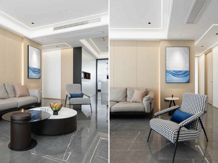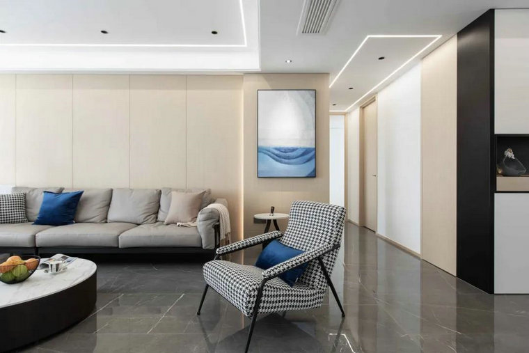 設計師特地選用普佩斯中灰耐磨王大理石瓷磚調配現代簡(jiǎn)約空間的高級底色,除了色澤純正,極致灰時(shí)尚簡(jiǎn)約大氣(2021流行色),在滿(mǎn)足裝飾性的同時(shí),更擁有超強的耐磨功能(超級耐磨,無(wú)懼磨損),與現代簡(jiǎn)約功能主義完美契合。干凈簡(jiǎn)潔的軟裝設計與清晰流暢的空間線(xiàn)條,以清醒克制的姿態(tài)完成了美與生活的融合。木飾面元素的融入賦予了空間恰到好處的素雅之感,灰色調與木色疊搭,兼顧藝術(shù)品味的同時(shí)呈現著(zhù)家的溫暖與舒適。